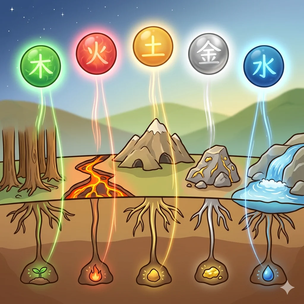 완전히 같은 오행은 아니어도, 해당 천간을 도와주는 오행이 지지에서 받쳐주는 경우를 함께 보기도 합니다. 예를 들어 금 일간이 토 지지를 많이 두고 있으면 직접 같은 금 뿌리는 아니더라도 도움을 받는 상태로 읽습니다. 다만 이것은 같은 오행이 직접 뿌리내린 것과는 구분해서 보는 편이 좋습니다.
